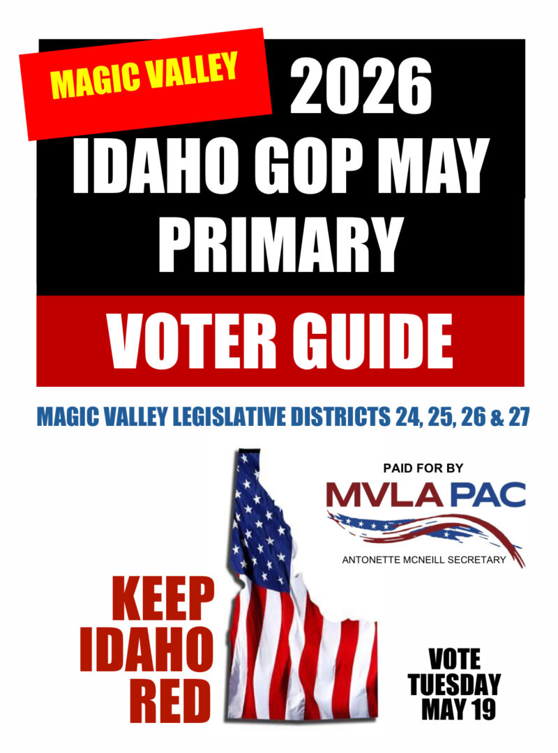 Get our MVLA PAC 2026 GOP May Primary Voter Guide into as many hands of Magic Valley voters as possible. Our 20-page guide will feature true conservative legislative and Twin Falls County candidates, precinct committeemen candidates, a 2026 legislative session voting record of all Magic Valley legislators–you won’t find anywhere else. Each copy costs about $1 to print.
